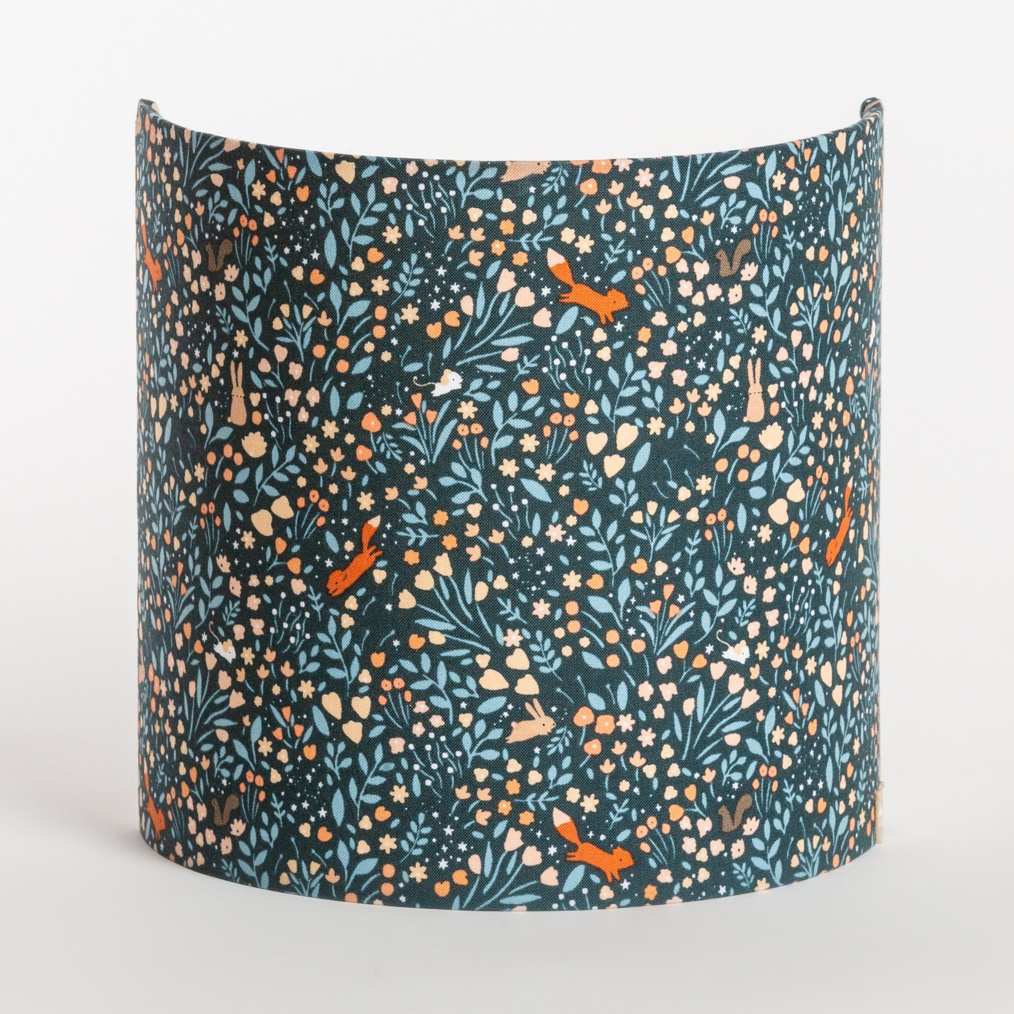 Prêt pour la balade en forêt ?  Avec son imprimé délicat mêlant petits animaux et mini motifs floraux sur fond bleu nuit, cet abat-jour pour applique est propice aux doux rêves. Idéal pour une chambre d'enfant.