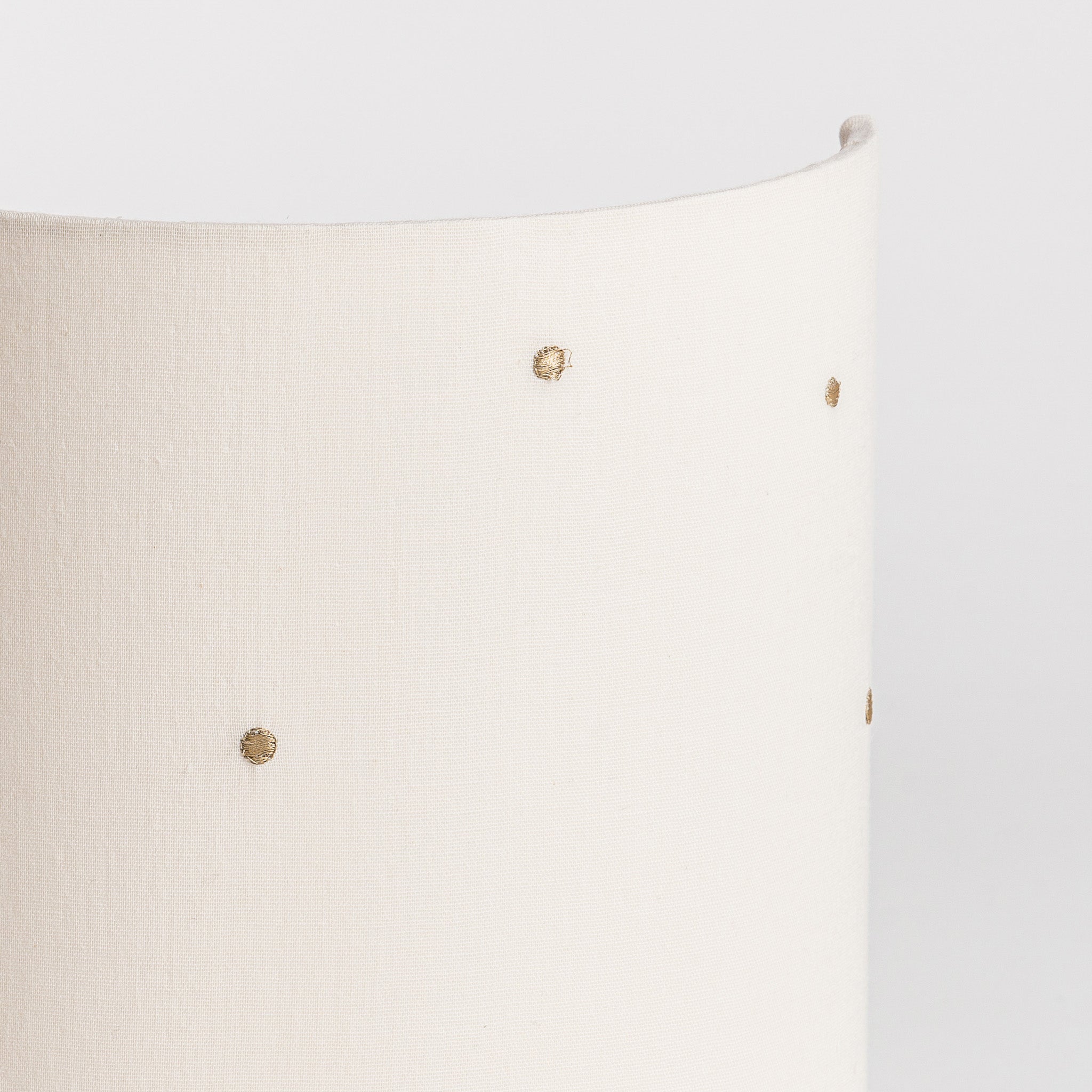 Cette applique murale est habillée d'une double gaze de coton brodée de pois dorés dans une teinte blanc cassé.