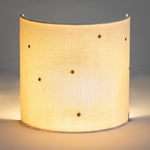 Abat-jour pour applique murale de forme demi-lune, fabriqué main en France en édition limitée. Deux crochets de fixation fournis. Ampoule non fournie.