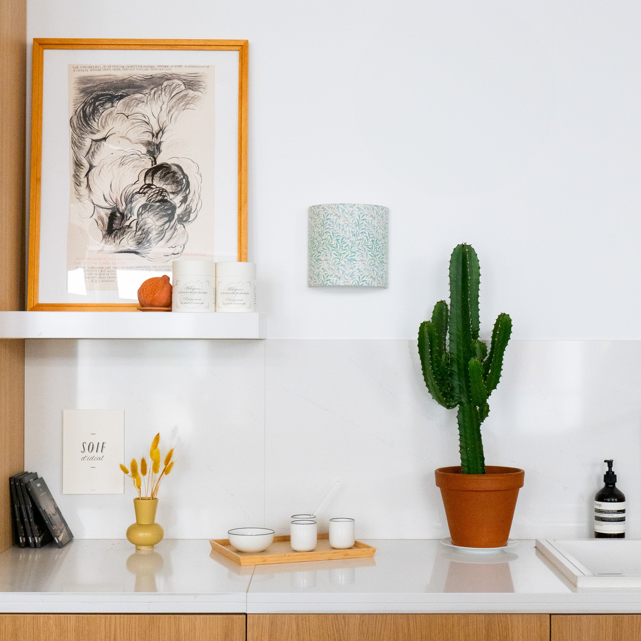 Dans le style raffiné de William Morris, cette applique séduit par son motif aérien de branches de saule ondoyantes dans une douce palette de verts et de bleus.