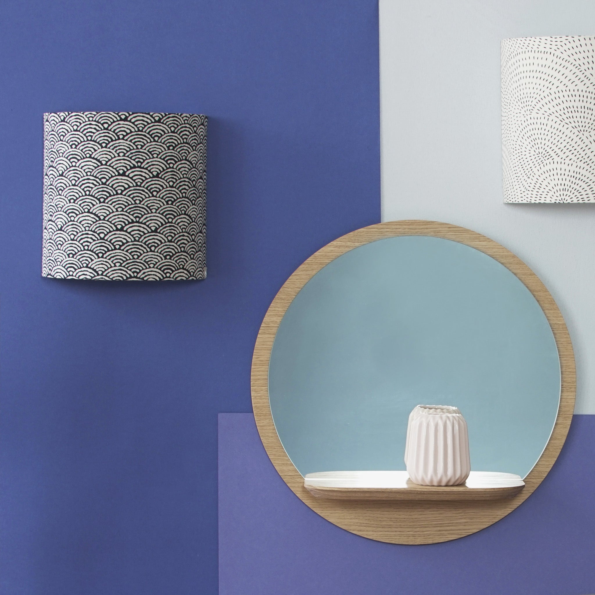 Cet abat-jour pour applique murale est confectionné dans un coton épais et texturé. Le motif traditionnel japonais est teint artisanalement à l'indigo noir, ce qui lui confère un bel aspect brut et cette teinte particulière entre le noir et le bleu. Un basique sublimé et indémodable.