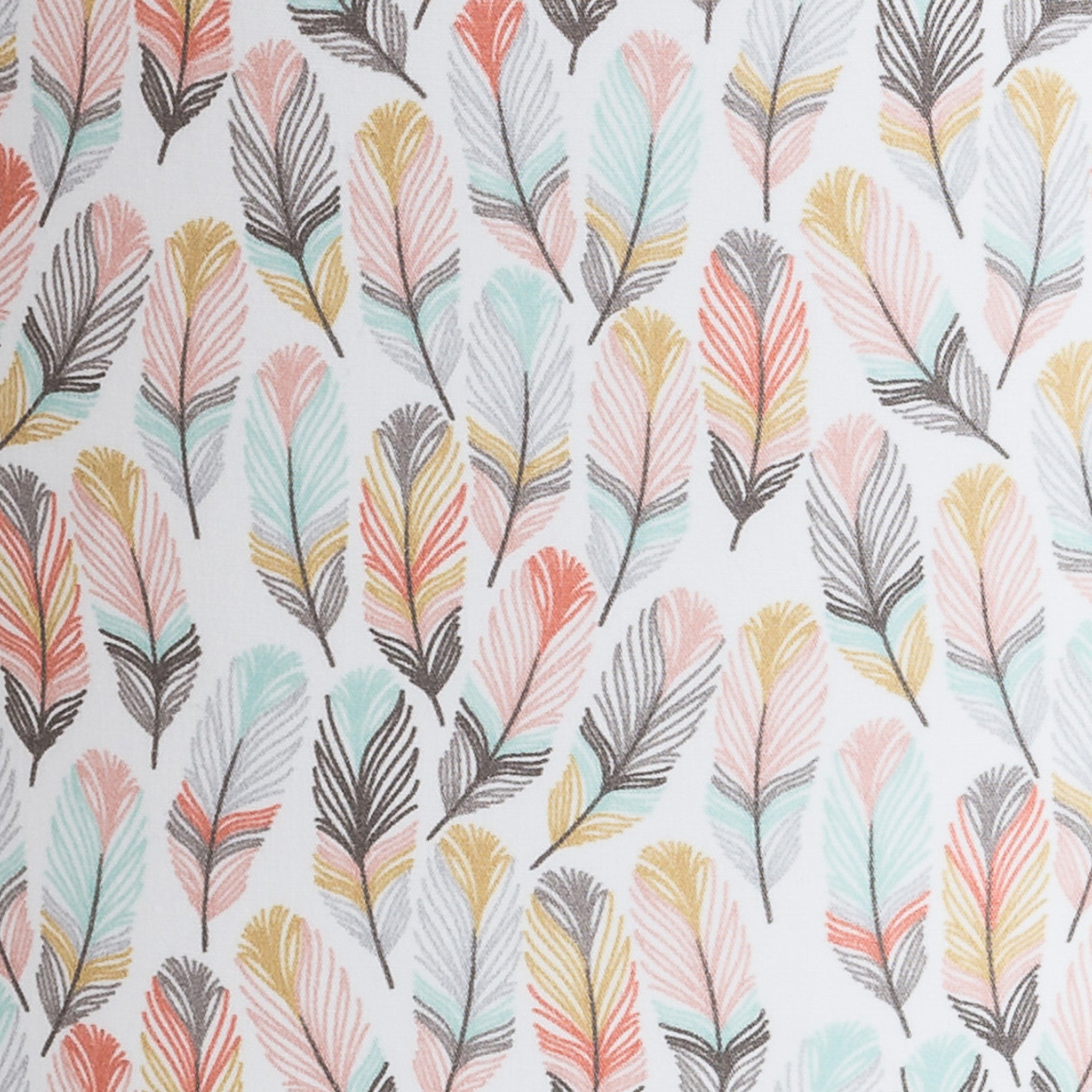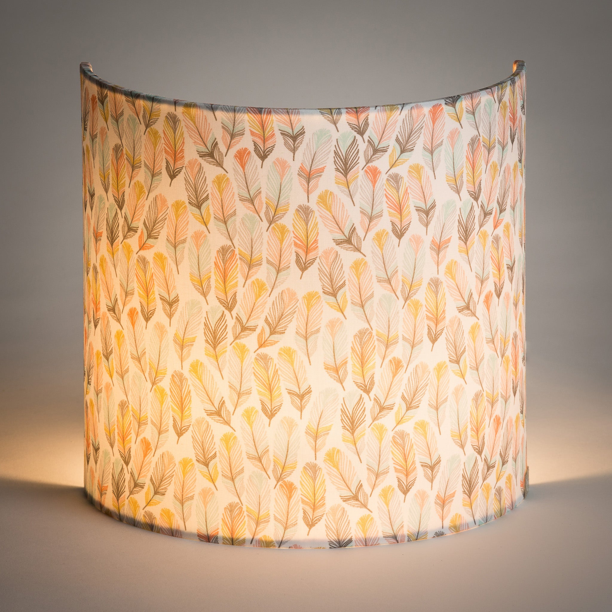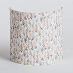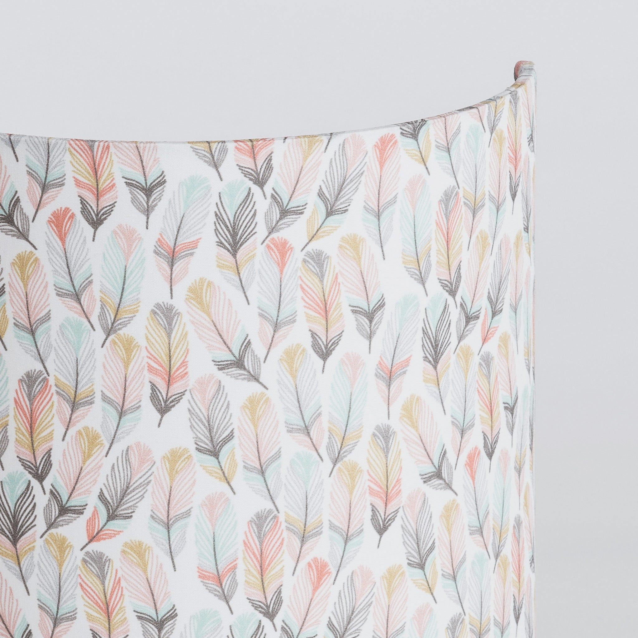Cet abat-jour pour applique murale est habillé d'un coton bio imprimé de plumes légères, mêlant les teintes pastel -rose poudré, menthe, moutarde, taupe, gris perle - et l'esprit graphique de la déco nordique.