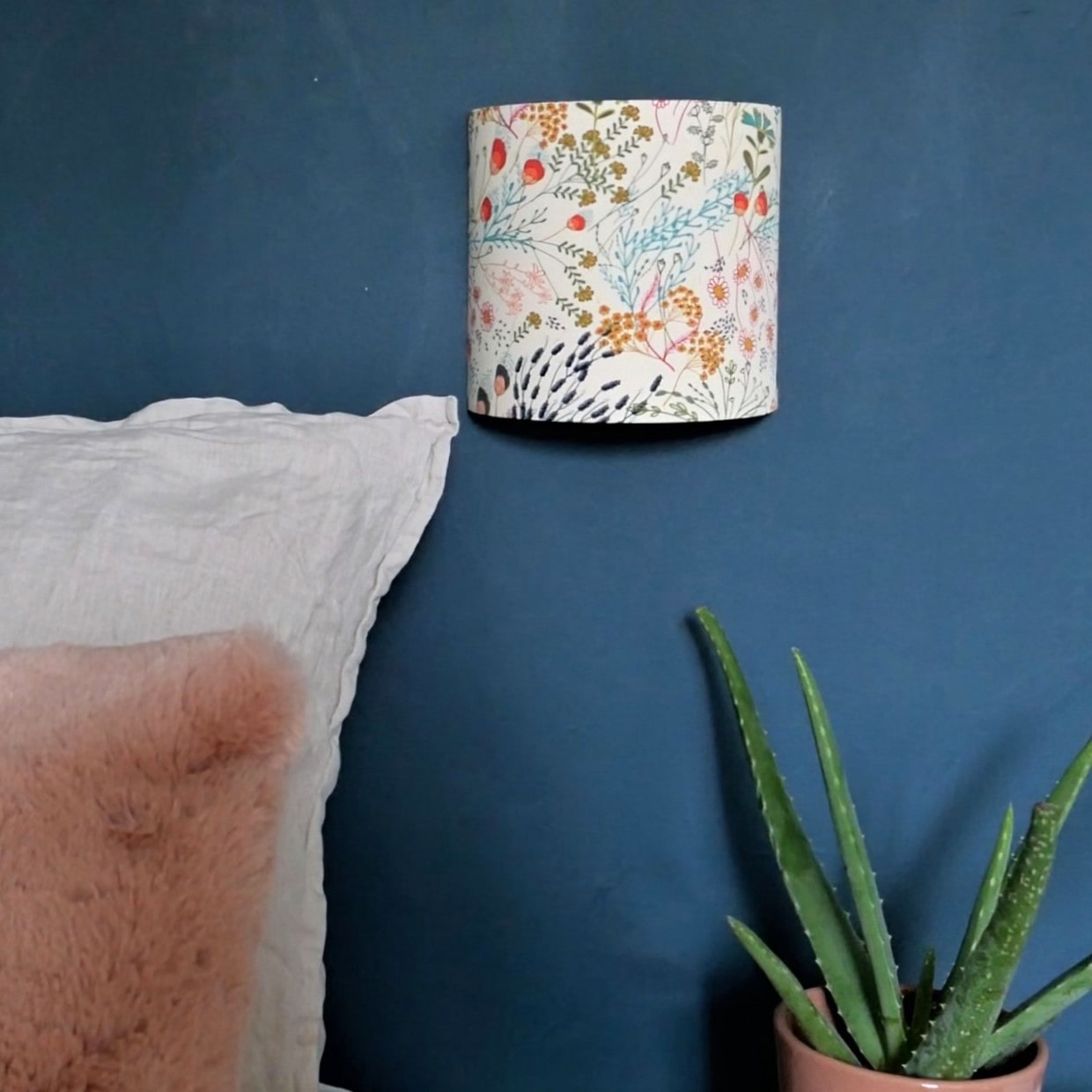 Grand effet pour cet abat-jour pour applique murale paré d'une composition florale façon Ikebana : ce mix de fleurs colorées qui s'harmonisent sur fond beige naturel est juste parfait pour végétaliser notre déco.