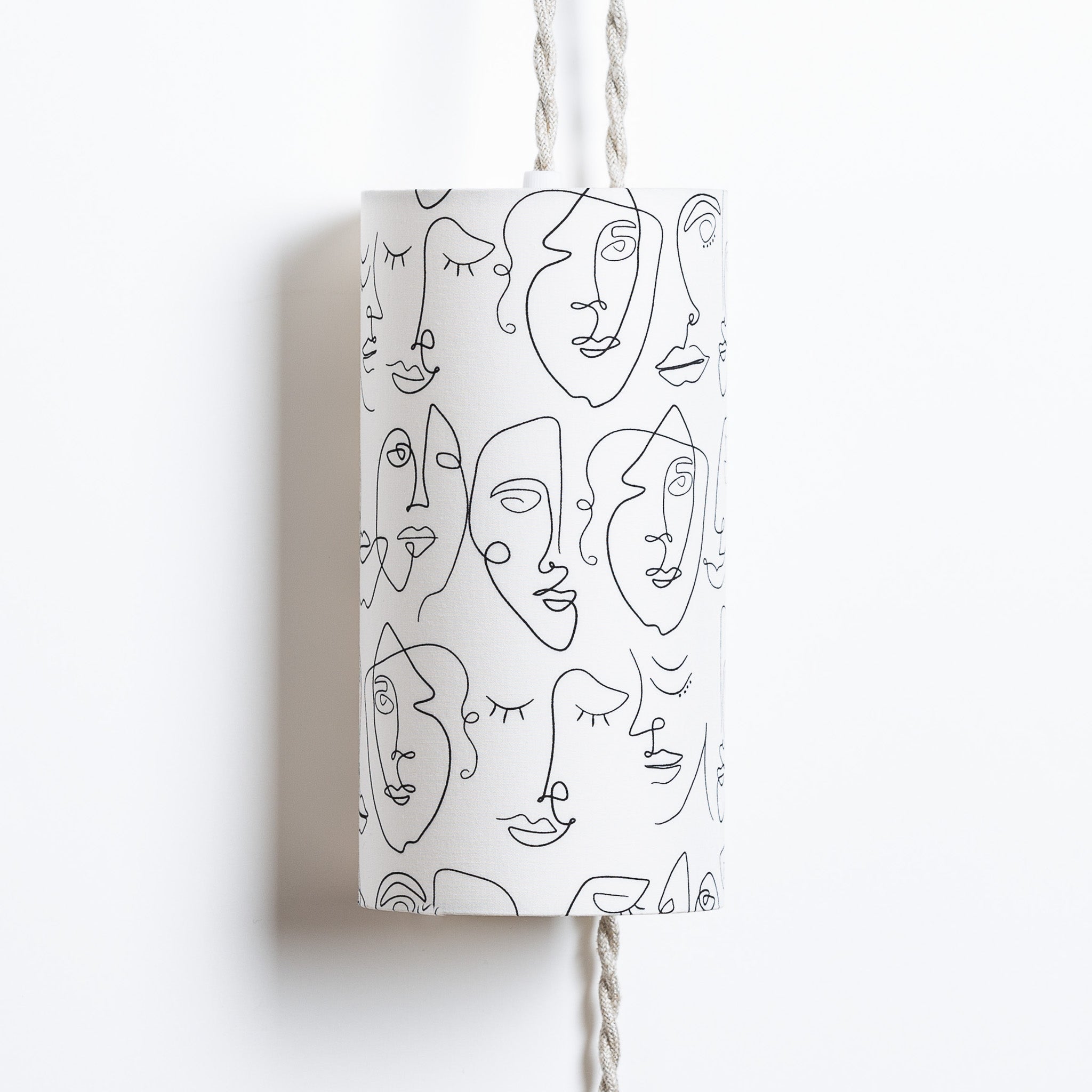 Cette lampe nomade se suspend n'importe où, pour un éclairage d'appoint là où vous en avez besoin : en chevet près du lit, à côté du bureau ou du canapé... Elle se pare de visages abstraits, esquissés d’un seul trait noir sur fond blanc cassé. Clin d'oeil au style de Cocteau ou Picasso dans les années 50-60, le motif graphique et minimaliste apporte juste ce qu’il faut de touche arty à votre déco.